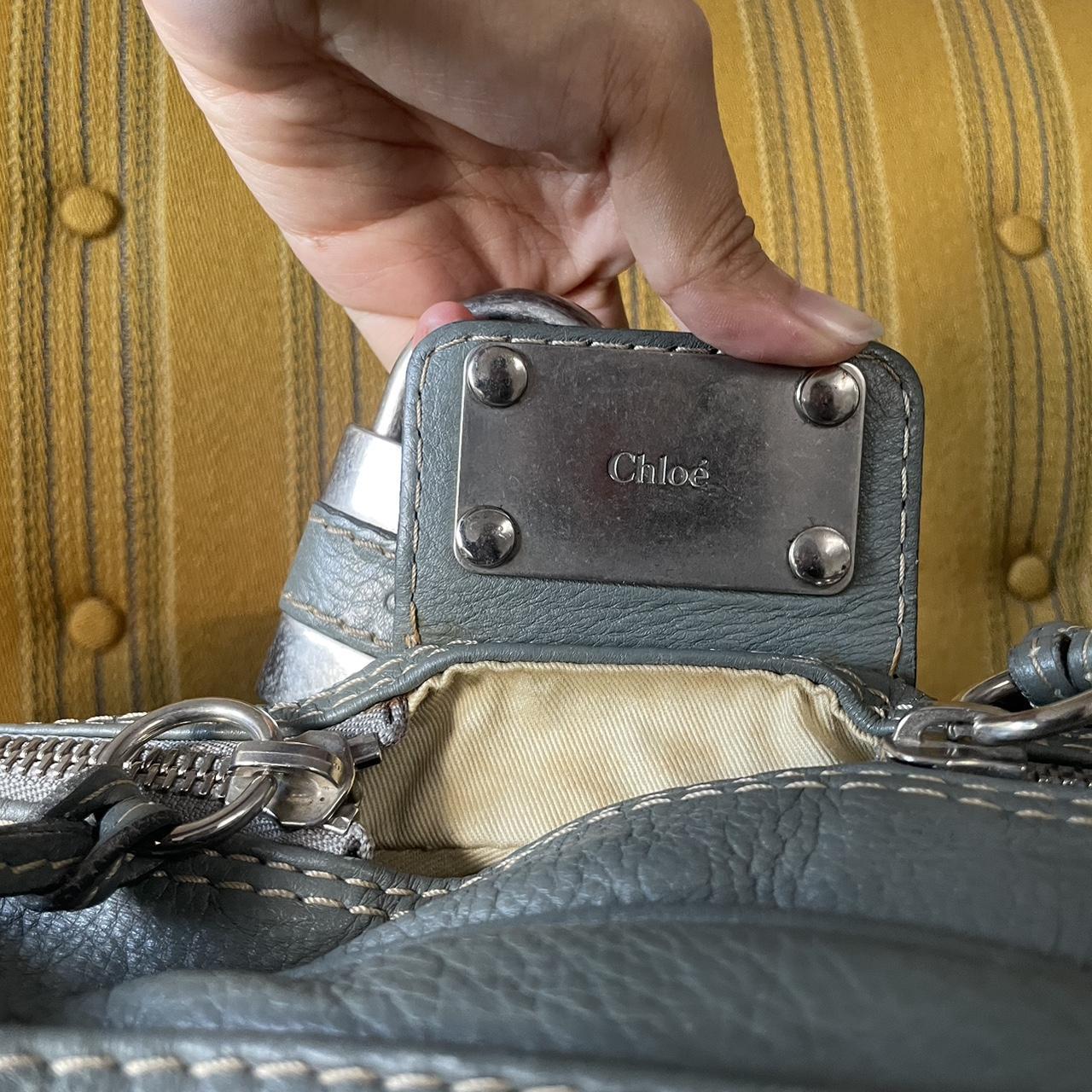 PreOwned Vintage Chloé Paddington Zippy Satchel Bag in Grey Blue Leather